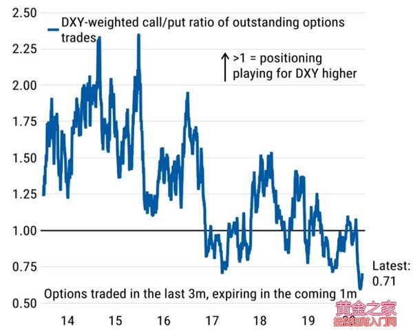 附圖:期權市場中美元凈空頭處于歷史峰值 來源:摩根士丹利,彭博