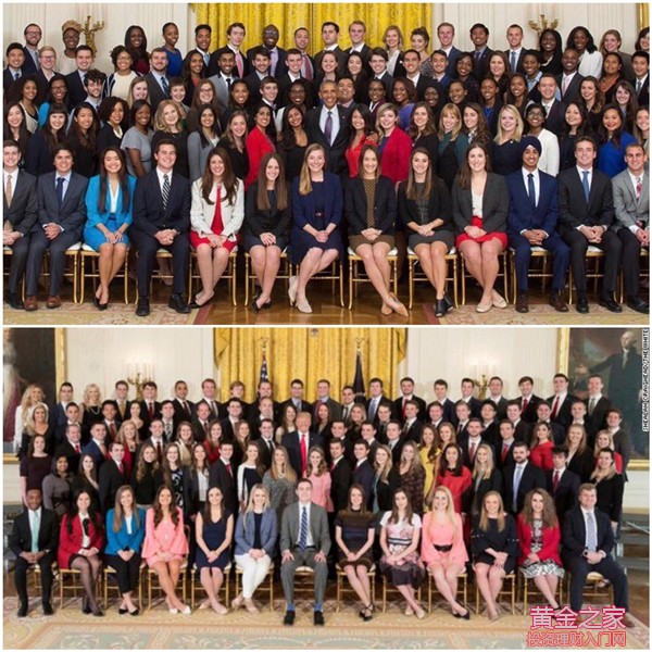 民調和賭場賠率背離可能說明一個問題:美國長期的政治正確環境造成許多選民在面對無關痛癢的民調時,隱瞞甚至捏造自己的政治觀點。真實的政治傾向則在“用錢投票”的賭博押注時暴露出來。 引觀察者網的說法:“所謂的中間選民是那些已經下定決心卻對自己的選擇守口如瓶的選民。媒體描述的那種會左右搖擺的選民,事實上少得可憐。” 美國近期浩浩蕩蕩的Black Lives Matter運動之下,對現總統的抨擊成為一件政治正確之事。但BLM運動對選情的影響可能沒有那么大——特朗普從不受少數裔選民待見,也從未掩飾對白人的青睞。 附圖:奧巴馬(上)與特朗普(下)時期白宮實習團隊對比 來源:reddit.com