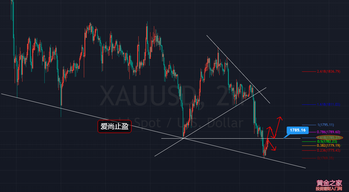 基本面: 周四(2月18日)亞洲時段,現貨黃金小幅反彈,交投于1782美元附近,周三(2月17日)金價錄得五連跌,因美元走強且美國經濟數據好于預期降低了黃金作為避風港的吸引力。美聯儲1月會議紀要顯示美聯儲官員認為縮減資產購買計劃的條件在一段時間內難以實現,這意味著美聯儲將在較長時間內維持超寬松的貨幣政策。日內重點關注初請失業金數據,另外可以適當關注美國1月進口物價指數、1月新屋開工年化數據等等。今天還有美聯儲理事布雷納德和亞特蘭大聯儲主席博斯蒂克將發表講話 技術面: 黃金,自除夕夜開始走下行,金價在跌破三角形態后走續跌,昨晚,金價在美盤前開啟又一輪的下跌,晚間金價最低觸及1869位置后,受到4小時級別趨勢線支撐及前期低點支撐開始反彈整理。當前黃金日線雖呈連陰回落,但下方面臨4小時級別及前期低點的關鍵支撐位,日內黃金,不宜過分看空,短期還有反彈修正的需求,上方阻力關注1785一線,此位是前期低點的頂底轉換位,也是昨日下跌反抽的0.618位置,這個位置,是日內關鍵的做空位置,也是日內的強弱分水嶺,日內黃金,觸及1785可以先空,主要看午后回落,下方支撐關注1775,強支撐1765,金價若上破1787,短期有望延續反彈,那么,空單就需調倉出局。 操作建議: 1785附近空,止損1790,目標看1775 |