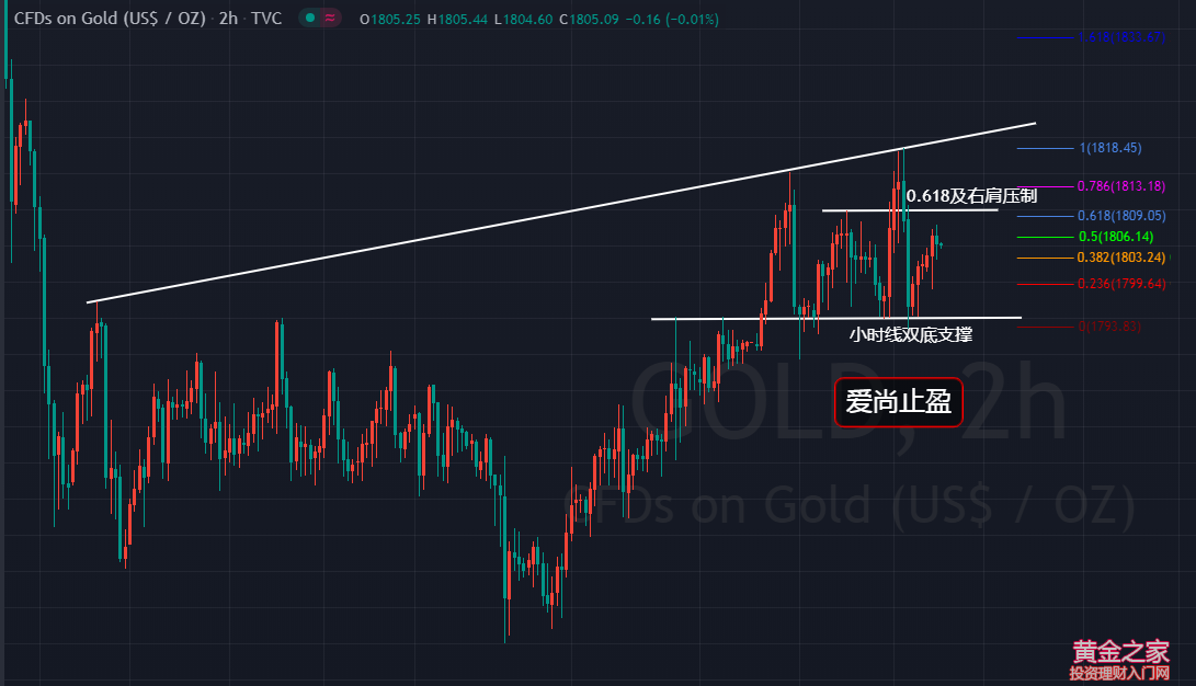 基本面: 周五(7月9日)亞洲時段,現(xiàn)貨黃金小幅上漲交投于1805附近。周四(7月8日)金價沖高回落,錄得十字星,一方面美國股匯雙殺,市場避險情緒升溫令黃金收益,另一方面通脹預(yù)期不斷降溫,令多頭有所擔(dān)憂。日內(nèi)關(guān)注中國CPI以及英國GDP。 技術(shù)面: 昨日黃金,早間小幅下探觸及日線5日均線支撐1796位置后開始走上升,歐盤金價延續(xù)上升,最高觸及1818一線后開始回落,美盤金價延續(xù)回落,在刺破早間低點1796后最低觸及1794開始走反抽,凌晨金價震蕩上升,日線最終收取一根上影線極長的十字星,日線在六連陽后收十字,這種十字,走轉(zhuǎn)折的概率一般不大,所以,日內(nèi)黃金,暫看循環(huán)上升。 當(dāng)前,金價依舊企穩(wěn)在日線5日均線之上運行,昨日金價雖然刺破日線5日均線支撐,但小時線收在了5日均線之上,只能以虛破來對待。細分到小時線我們可以看到,本周行情,都是亞盤上升,歐盤延續(xù),美盤前沖高走回落,而且,回落的幅度都比較大,基本都是回落到早間的起漲點附近后再走震蕩上行,行情走循環(huán)上升,日線方面雖然連陽,整體漲幅較小,但需要注意的是,日線的低點在不斷抬高,日線也是走的震蕩上升,日內(nèi)黃金,還是以震蕩循環(huán)上升來對待。日內(nèi)黃金,下方支撐繼續(xù)關(guān)注日線5日均線1799,早間黃金,可以直接在1799一線多,以昨日美盤低點1794為止損位進行防守即可,上方壓力關(guān)注1809一線,此位是昨日回撤反抽的0.618壓力位,也是周三美盤的高點位置,主要看歐盤能否有效突破1809,若在1809一線受阻回落,小時線將形成短期的頭肩頂回落形態(tài),同樣,5日均線支撐1799也是早間的起漲點,早間的起漲點不能破,跌破的話,多單就需調(diào)倉出局。 操作建議: 1799附近多,止損1794,目標(biāo)看1809 |