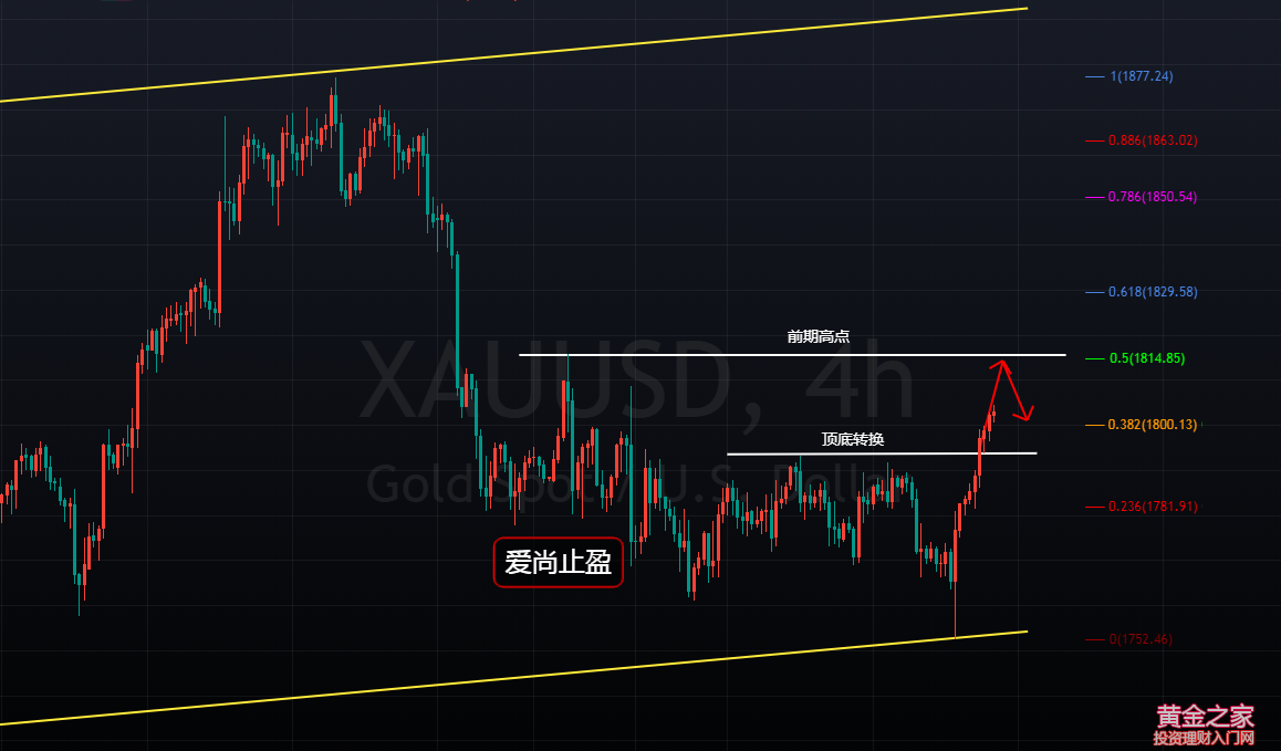 在美聯儲利率決議后,黃金自1752低點開始一路強勢上行,昨日晚間突破1793-94阻力位后,開始延續上行,在昨天的分析中,也明確的指出,突破1794將迎來黃金的春天,晚間最高觸及1800附近整理收盤,早間,金價小幅整理后再次拉升至1804附近,30個小時,50美金的漲幅,基本上都沒有明顯的回調,看多,但行情不一定回給你回撤上車的機會,看多,只能去追,這就是趨勢。我們前期在1763的位置反復看多,最終死在了黎明前,這波多頭沒能拿捏住,沒關系,交易的機會多得是,這次沒把握好,下次再來就行,千萬不要因為錯過多單而去看空,越漲越空,越空越漲,最后死在原本看好的多頭里。 黃金,在昨日收取一根飽和的實體大陽線,價格上破前期的雙頂壓制,彰顯出多頭的強勢,那么,今日黃金,就還需看多,一般情況下,前一日大陽,第二天早間可以做多博續漲,而做多的位置,參考凌晨回撤的低點,凌晨低點在1793.5附近,此位也是前期的雙頂壓制的頂底轉換位,今日做多,依托此位去進行即可,不過,早間小回撤,僅僅只給到了1797,當前1803的位置,就比較尷尬了,再等1793多的話,跌破了早間的起漲點,強勢沒了,上漲就難了,高位去多的話,已經50美金的漲幅,一個小回調可能就會打掉你的止損,所以,這個多單,我們暫時放棄,看多但不追多。上方短期阻力關注1808,強阻力關注前期回撤后反抽的高點1815,此位也是1877-1752回撤反抽的50%阻力位,日內黃金首次觸及此位附近可以考慮空,別的位置不安排。 操作建議: 1815附近空,止損1820,目標看1810-00 |