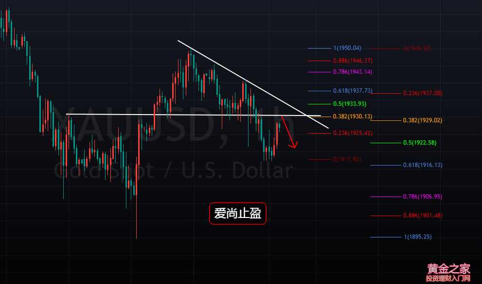 黃金,上周走延續(xù)回落,周線方面收取一根下影線較長(zhǎng)的大陰,這種形態(tài)收線后,本周黃金,還有回落需求,操作上,以反彈做空為主,上周五給出的黃金1940空單也是如期抵達(dá)目標(biāo)1925,周五凌晨金價(jià)最低觸及1917后,受到此輪反抽回撤的618支撐后走反抽,這個(gè)位置的支撐,在上周五分析中也是明確的指出。 早間,黃金回踩1917支撐附近后再次走反抽,彰顯出此位支撐的有效性,1917,成了日內(nèi)多空的關(guān)鍵分水嶺,只有有效跌破1917,本周黃金向下延伸的概率才會(huì)加大,上方阻力關(guān)注1930-31,此位是周五回撤反抽的618壓力位及1950-1917回撤反抽的382壓力位,亞盤(pán)黃金,先依托1930-31壓力位做空看回落,以1935作為止損位進(jìn)行防守,主要看回落力度,金價(jià)若能跌破1916-17支撐,后期反抽繼續(xù)做空即可,下方短期支撐關(guān)注1907,強(qiáng)支撐關(guān)注1890,1875,這兩個(gè)位置,本周首次觸及都可以短多看反抽。 操作建議: 1930附近空,止損1935,目標(biāo)看1918-08 |