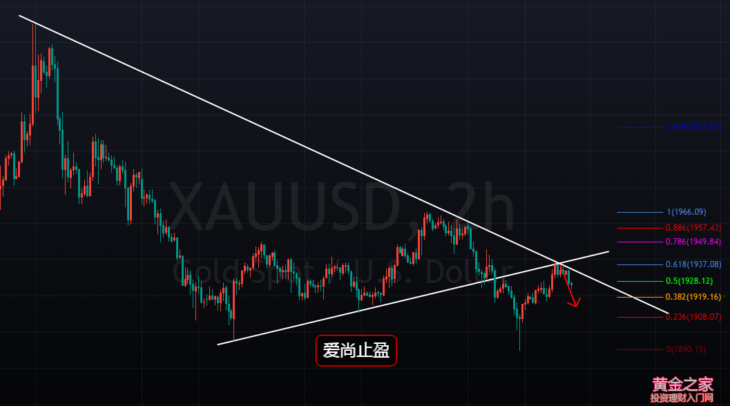 黃金,在上周連續走反彈,周五觸及2009-1895回撤反抽的0.618壓力位1965附近后開始受阻回落,本周初,金價依托1965壓力位開始走回落,價格跌破前期低點1895,最低跌觸及1890位置后,受到日線級別1780-2070反彈回撤的0.618支撐后開始一路慢漲,凌晨時段最高觸及1938附近后震蕩整理。1895的有效跌破,預示著日線級別的B浪反彈已經走完,接下來,就是C浪的下跌了。 1938的位置,是4小時級別的頂底轉換位,也是1966-1890回撤反抽的0.618壓力位,同時,此位也是昨日日線級別短期均線的壓制位及日線級別下降趨勢線的壓力位,這個位置,是周尾的關鍵壓力位,也是跌破1795后,反抽的1687壓力位,這個位置十分關鍵,此位若能守住,將有望迎來C3的回落,這也是我凌晨為何在此壓力位考慮波段空單的原因,而今日黃金,繼續依托1938壓力位做空即可。上方阻力繼續關注日線短期均線1933附近,觸及此位可以繼續空,以凌晨高點1938之上作為止損位看空即可,下方短期支撐關注1915,1908,強支撐繼續關注1890,若能有效跌破1890,此次1938將有望成為近期的高點,而空單將看至1875-1830。 操作建議: 1933附近空,止損1939,短線看1916-10,波段看1875-30 |