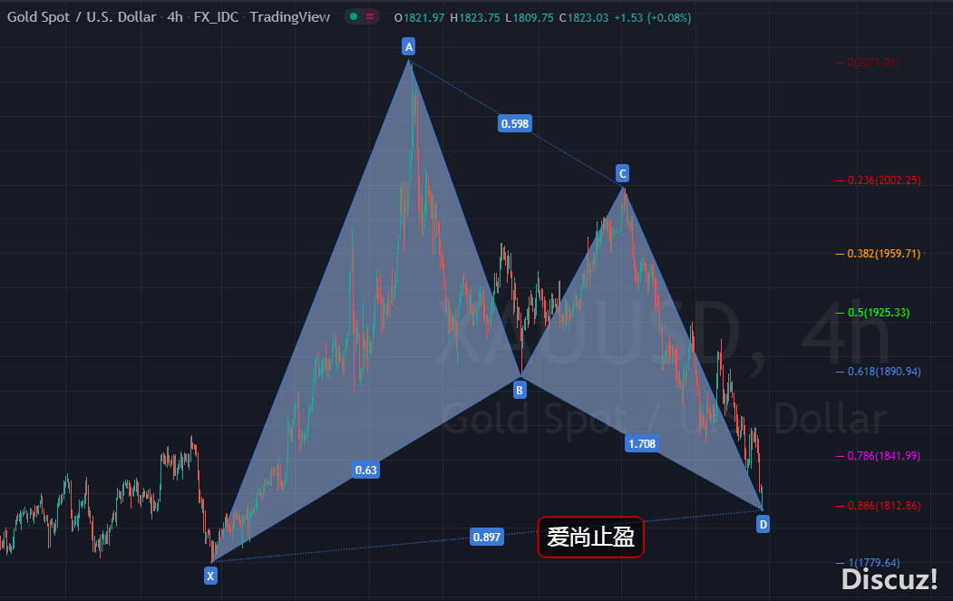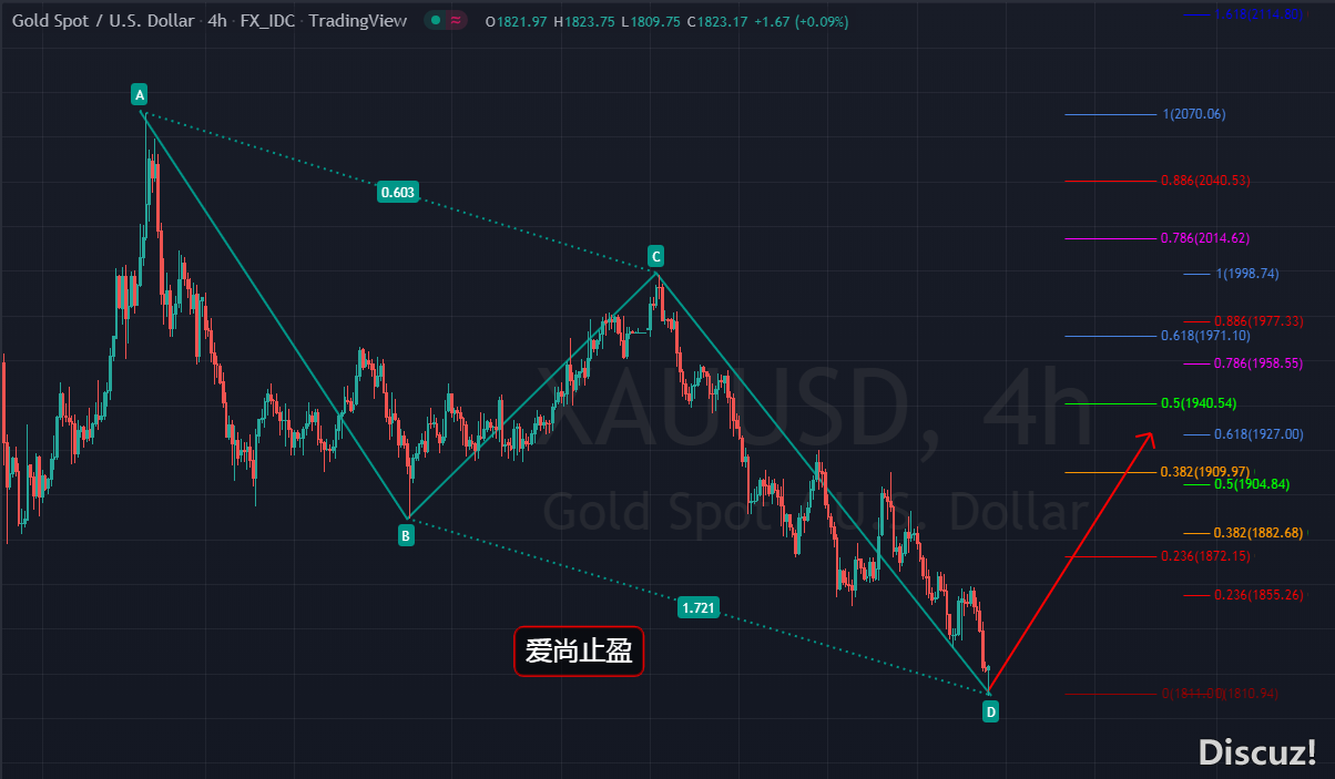 本周給出的黃金1832-33多單,最高觸及1858,多單在1850減倉后,剩余倉位多單,于昨日晚間在1831掃損離場。黃金,在昨日走回撤后,凌晨延續回落,這種弱勢回撤,一般早間都會有延續,早間,黃金按技術面走續跌,價格快速回落至1810后走反彈,早盤的這種加速下跌,有加速見底的跡象,加速早盤急跌,延續性上往往不是很好,所以,早盤黃金,不要去追空。 黃金自2070下跌以來,4小時結構的三浪下跌結構已經基本清晰,從2070-1890,180美金的跌幅,1998-1810,也有188美金的跌幅,按照幅度而言,這波下跌已經基本到位,形態上也符合AB=CD看漲形態。日線級別的諧波位支撐在1814附近,早間黃金雖然跌破了此位,但僅僅是刺破,5分鐘收線收在了此位上方,所以,早盤,我們依托諧波位支撐,在回撤1815后給出了多單,后面如果要做多,1818附近就可以進場,以早盤低點1810作為止損位進行防守即可,上方壓力關注1831,站穩的話,黃金有望進一步走高,強壓力繼續關注高點1858,突破繼續看好波段上漲,目標暫看1882-1927。 操作建議: 1818附近多,止損1810,目標看1829-40,波段看1882-1909-1927 |