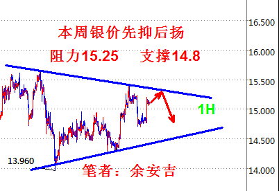 余安吉:周五謹(jǐn)慎操作,現(xiàn)貨白銀、原油歐盤操作建議 周四因初請(qǐng)失業(yè)金人數(shù)糟糕,公布值為26.7萬(wàn),大于前值26.4萬(wàn),卻于小于市場(chǎng)預(yù)期的27.5萬(wàn),公布值大于前值,卻小于預(yù)期,銀價(jià)價(jià)先調(diào)后漲,推動(dòng)白銀大幅拉升刷新了15.2的高點(diǎn),不過(guò),早盤因耶倫加大了年內(nèi)加息的可能性,銀價(jià)價(jià)跳空低開(kāi),短線預(yù)計(jì)在0.618的位置15.00上會(huì)有反彈,上方繼續(xù)關(guān)注15.4一線,亞歐盤主要以震蕩修正為主,若是美盤之前還不能站上15.2上方,那么日內(nèi)就會(huì)走回落修正行情。 4小時(shí)上銀價(jià)當(dāng)前貫穿中軌及均線系統(tǒng)后脫離發(fā)展,短期存在回踩確認(rèn)支撐修復(fù)的力度,趨向指標(biāo)多頭放量后出現(xiàn)高位整理態(tài)勢(shì),日內(nèi)留意回踩對(duì)15.0-14.8支撐的確認(rèn),上行壓力留意當(dāng)前形態(tài)上出現(xiàn)的不規(guī)則U底的頂端15.2-15.3壓力。 昨日原油行情過(guò)山車式的掃蕩,再次下跌未能跌破三角整理區(qū)間底部,強(qiáng)勢(shì)回升,先抑后揚(yáng),日線錄得一根帶長(zhǎng)下引線的小陽(yáng)K,一波過(guò)山車式的震蕩之后,探底回升考驗(yàn)45.5高點(diǎn)的壓力,雖然沒(méi)有有效突破高點(diǎn),不過(guò),二次上來(lái)肯定不能在這里去博空單,下方回踩在45.0以及中軌44.5的區(qū)域建倉(cāng)多單,日內(nèi)有望挑戰(zhàn)46高點(diǎn)的壓力。 現(xiàn)貨白銀、原油日內(nèi)策操作建議: 1、白銀上行至15.3附近空單,止損15.5,目標(biāo)15.00,破位至14.8附近; 2、原油價(jià)格觸及44.5多單,止損44.0,目標(biāo)46附近。 |