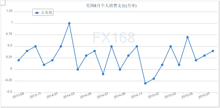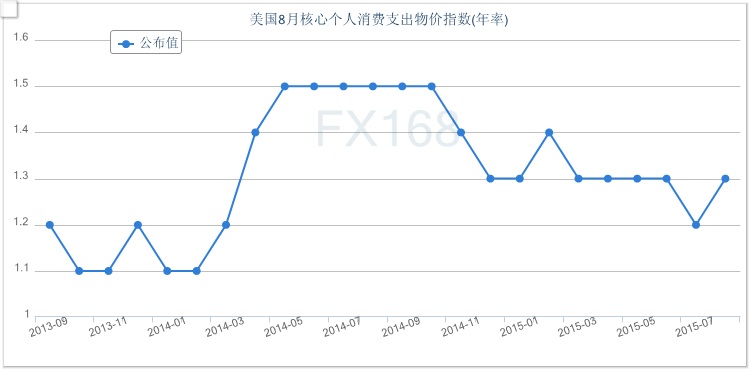 (美國消費(fèi)支出月率走勢圖 來源:FX168財(cái)經(jīng)網(wǎng)) 美國8月份個(gè)人收入增長0.3%,7月份個(gè)人收入修正后為增長0.5%,為去年11月份以來最高增幅。 通過維持開銷,消費(fèi)者們幫助美國經(jīng)濟(jì)克服了威脅拖累經(jīng)濟(jì)增長的國際風(fēng)險(xiǎn)。勞動(dòng)力市場的穩(wěn)步增長,加上油價(jià)下跌和收入溫和增長,應(yīng)該會(huì)繼續(xù)有利于促進(jìn)消費(fèi)。 “油價(jià)帶來的能源紅利將提升消費(fèi)者的購買力,”法興銀行首席美國經(jīng)濟(jì)學(xué)家Aneta Markowska在報(bào)告發(fā)布之前表示,“我們預(yù)計(jì)會(huì)有幾個(gè)季度強(qiáng)勁的消費(fèi)開支! 美國商務(wù)部還在今天的報(bào)告中稱,美國8月核心個(gè)人消費(fèi)支出(PCE)物價(jià)指數(shù)年率增長1.3%,預(yù)期增長1.3%,前值增長1.3%。
