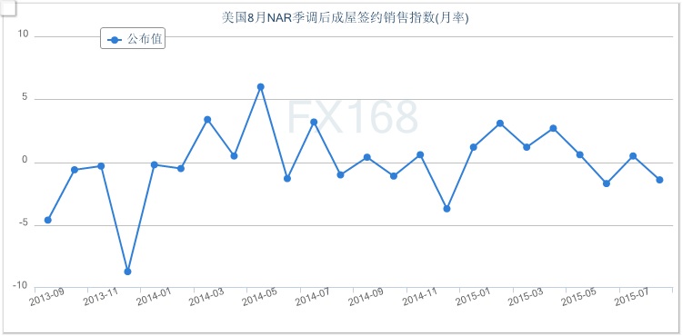 (美國核心PCE年率走勢圖 來源:FX168財(cái)經(jīng)網(wǎng)) 華爾街日?qǐng)?bào)(博客,微博)評(píng)論稱,作為美聯(lián)儲(chǔ)錨定的通脹指標(biāo),核心PCE年率連續(xù)40個(gè)月低于2%目標(biāo),但此次增長1.3%仍好于預(yù)期,民眾在汽車等耐用品方面加大支出,同時(shí)個(gè)人儲(chǔ)蓄率也下降一個(gè)百分點(diǎn),這些都有利于推動(dòng)物價(jià)上揚(yáng)從而使美聯(lián)儲(chǔ)官員堅(jiān)信通脹將會(huì)滿足年內(nèi)加息的要求。 不過,日內(nèi)公布的另一數(shù)據(jù)顯示美國8月季調(diào)后成屋簽約銷售意外下滑,為今年年內(nèi)的第二次走低,表明近期該國的住宅房地產(chǎn)市場的復(fù)蘇可能碰到些許困難。 全國地產(chǎn)經(jīng)紀(jì)商協(xié)會(huì)(NAR)周一公布的數(shù)據(jù)顯示,美國8月季調(diào)后成屋簽約銷售指數(shù)意外下跌1.4%,預(yù)期增長0.5%,前值增長0.5%。