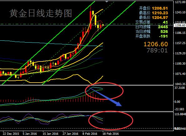 | 盡管近幾個交易日市場的表現不盡如人意,但Kitco全球交易主管PeterHug表示,依然對黃金市場看多。周三黃金價格結束了此前連續三個交易日的下跌,有所回升,維持在1200美元/盎司的關鍵關口水平上方。Hug表示:“總體而言,我認為黃金市場的基本面將在短期內繼續推高黃金價格。”不過Hug也指出,對黃金市場而言,后市上行將面臨很多困難。“這不會是順利的上漲,將會是很波動的。”Hug認為,黃金價格已經見底,并且他認為應當關注技術面表現。 黃金價格昨日止跌反彈,終結了日K線圖三連陰的格局,市場逢低買盤力量正在增強,短線走勢開始轉暖。 日線圖MACD雙線指標中,快線掉頭向下,綠色能量柱縮短,黃金空頭力量正在增強,可能會壓制金價走勢。 日線圖各條均線維持向上運行,相應的KDJ指標中,雙線掉頭向下,市場短線空頭力量正在累積,可能會打壓黃金走勢。 黃金昨天在均線壓制后出現小區間震蕩,1200關口守住,目前1小時圖均線粘合,靜候三角區間突破,1210能站穩可以追多,看向1220,1205破位追空看到1198,一旦昨天低點破位會出現快速下跌。 |